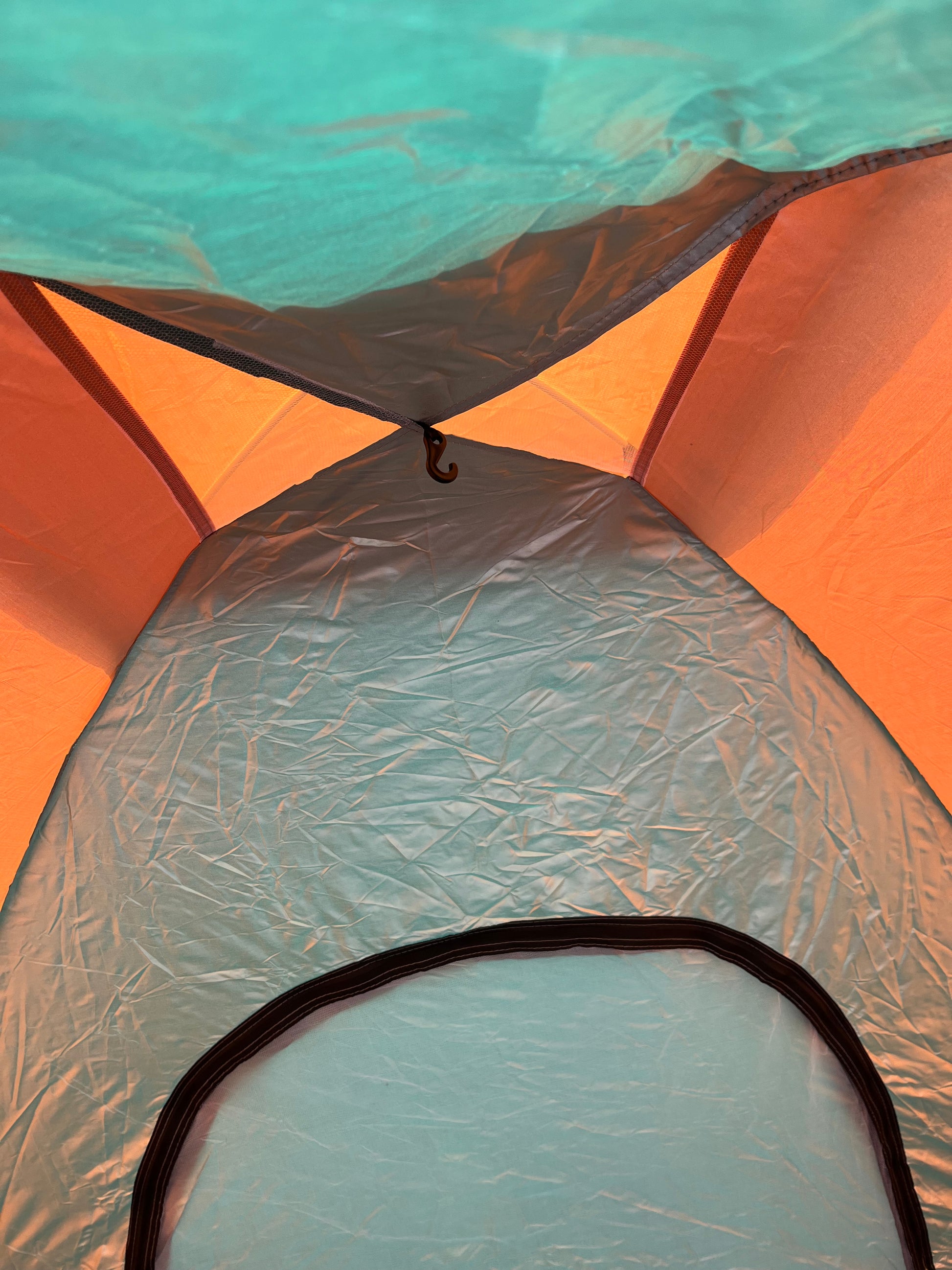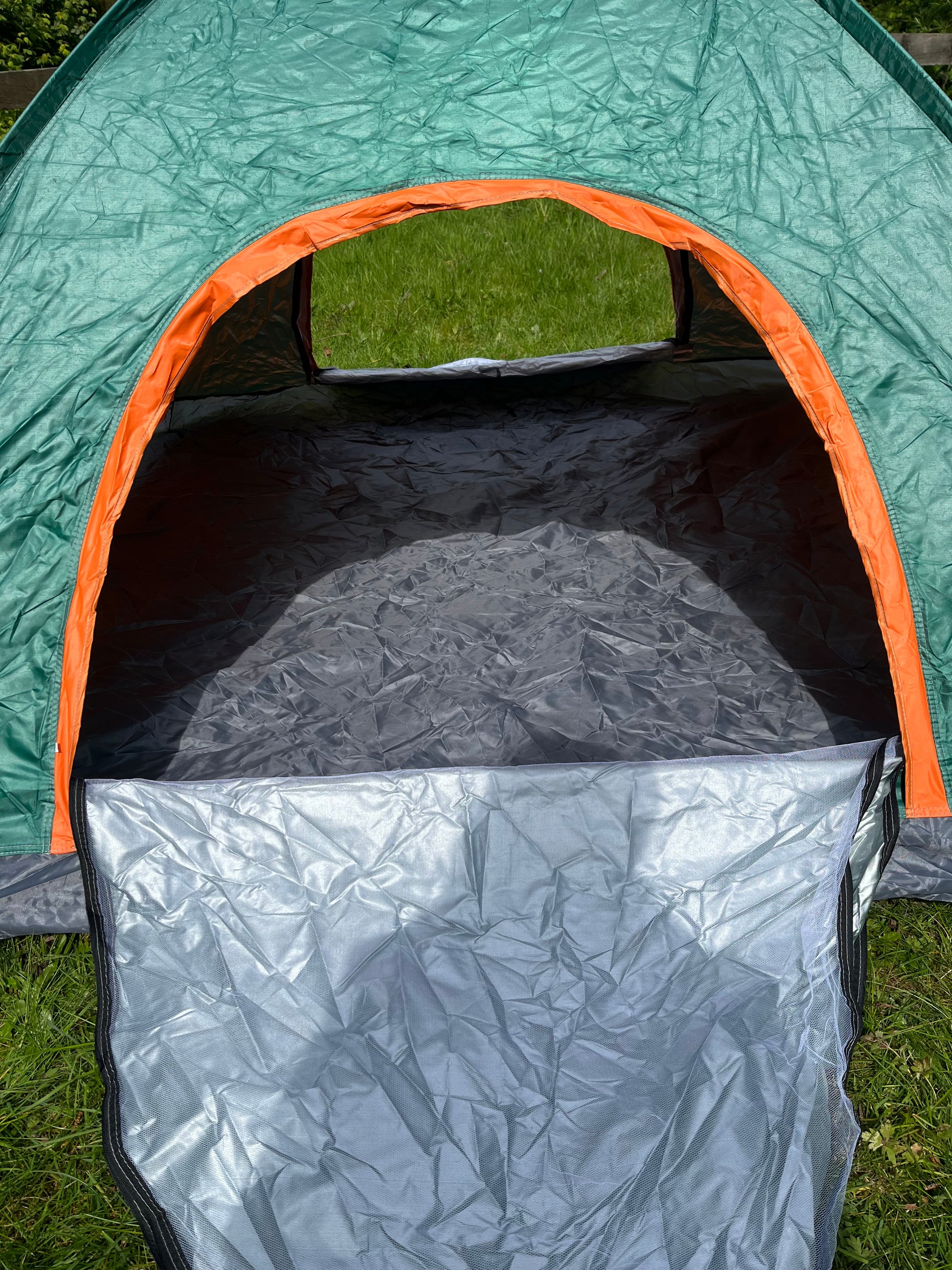 Einfaches Outdoorzelt Wurfzelt Campingzelt Pop up Zelt 2x2 Meter grün orange für 3-4 Personen